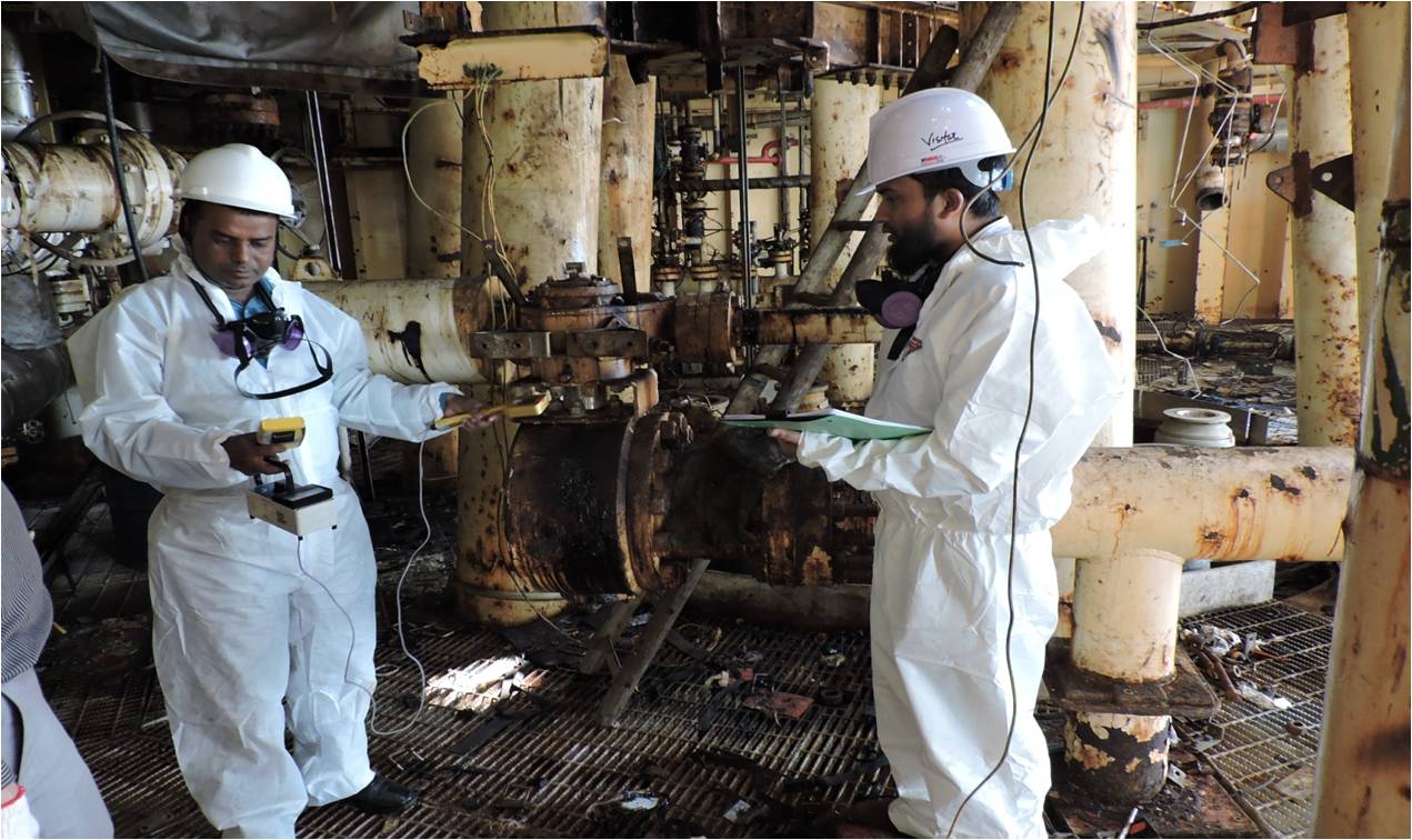 ১২ নভেম্বর ২০১৬। চট্টগ্রামের সীতাকুন্ডে অবস্থিত Ship Breaking Yard এ পুরাতন তেল ট্যাঙ্কার এর স্লাজে Radiological Contamination পর্যবেক্ষণ।