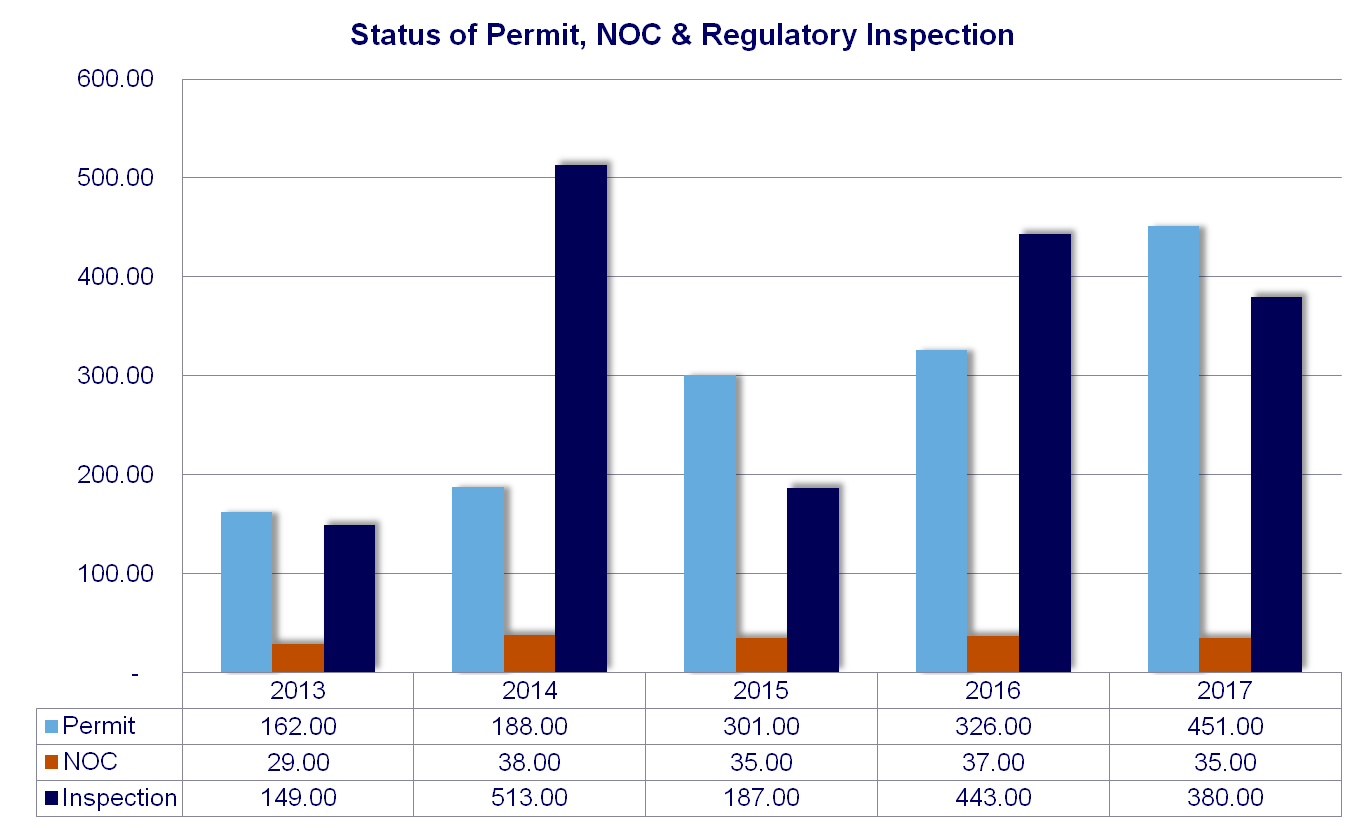 বাংলাদেশ পরমাণু শক্তি নিয়ন্ত্রণ কর্তৃপক্ষের বিকিরণ, পরিবহন ও বর্জ্য নিরাপত্তা (বিপবনি) বিভাগের অধিন দেশব্যাপী বিকিরণ স্থাপণাসমূহের অনুকুলে প্রদানকৃত লাইসেন্স, পারমিট, অনাপত্তিপত্র এবং সম্পাদিত পরিদর্শন কার্যক্রমের ধারাবাহিক চিত্র।
